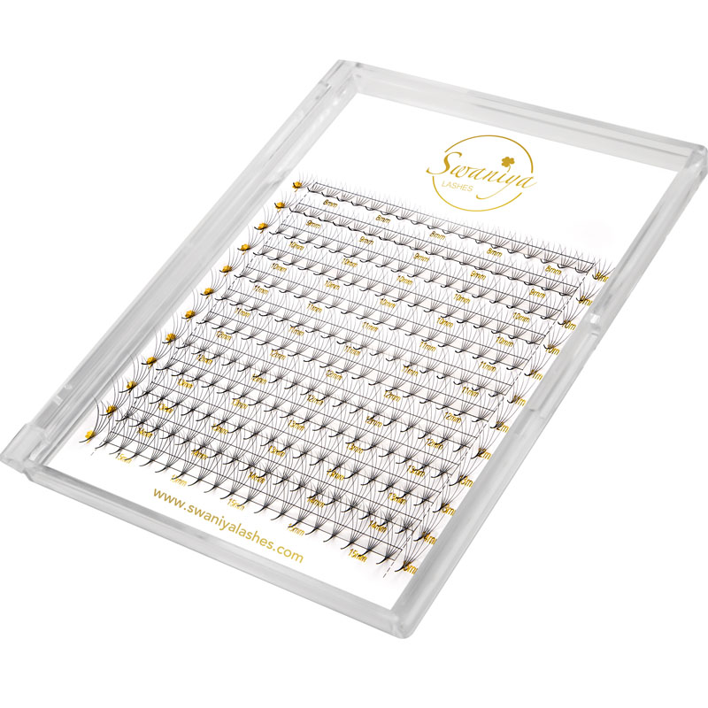 Bħala wieħed mill-manifattur professjonali tal-estensjonijiet tal-Eyelash Super Eyelash ta 'kwalità għolja ta' kwalità għolja glamorous, tista 'tkun assigurat li tixtri estensjonijiet ta' l-għajnejn tas-Super Fannijiet Premade Glamorous minn Swaniya® u aħna noffrulek l-aħjar servizz ta 'wara l-bejgħ u l-kunsinna f'waqtha. Is-super fannijiet ta 'Swaniya Premade huma magħmulin bir-reqqa bil-lashes ultra-rqiqa li huma fanned minn qabel, li jagħtu d-dehra ta' dehra aktar sħiħa u aktar voluminuża. Huma perfetti għal dawk li jixtiequ jżidu kuntatt drammatiku mal-logħba tal-lash tagħhom, mingħajr ma jikkompromettu l-kwalità.